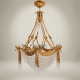 Empire Neoclassical Brass & Crystal Chandelier with Draped Swag and Icicle Drops